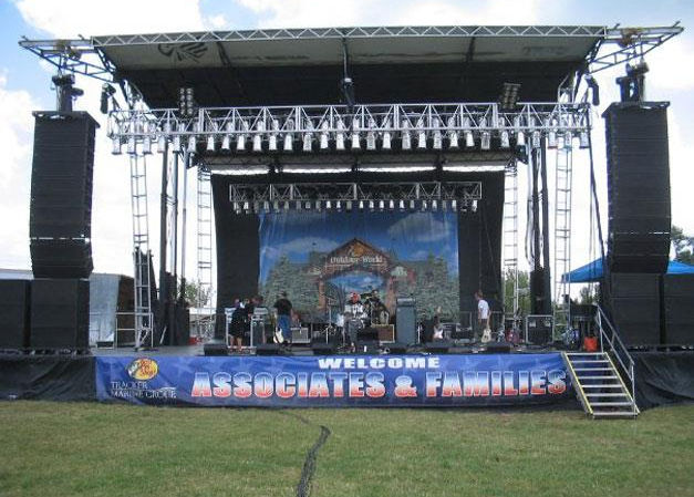 Whether you need risers, platforms, or a stage with a covered roof, our stage company is one of the best in the country. LaDeDa Entertainment can provide mobile staging from the SL100 20'x24' up to the SAM550 50'x40' and three sizes in between. These structures are strong and safe and set up amazingly fast using the minimum in labor, saving your event money and time. Ask us for other resources as well, including crowd control, mobile bleachers, rigging truss, motors and golf carts.